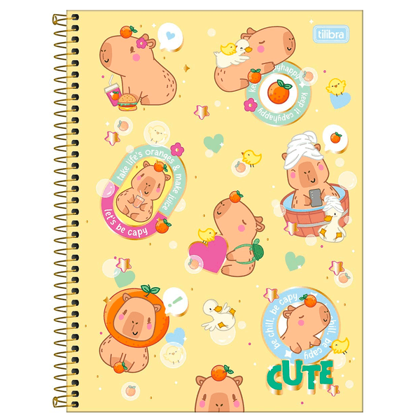 Caderno Universitário Tilibra Capyclub! O Caderno Espiral Capa Dura Universitário 1 Matéria Capyclub 80 Folhas possui capa dura com a parte interna decorada, bolsa de papel decorada para guardar trabalhos e anotações e folha com adesivos funcionais. Ideal para o dia a dia na escola ou na faculdade.