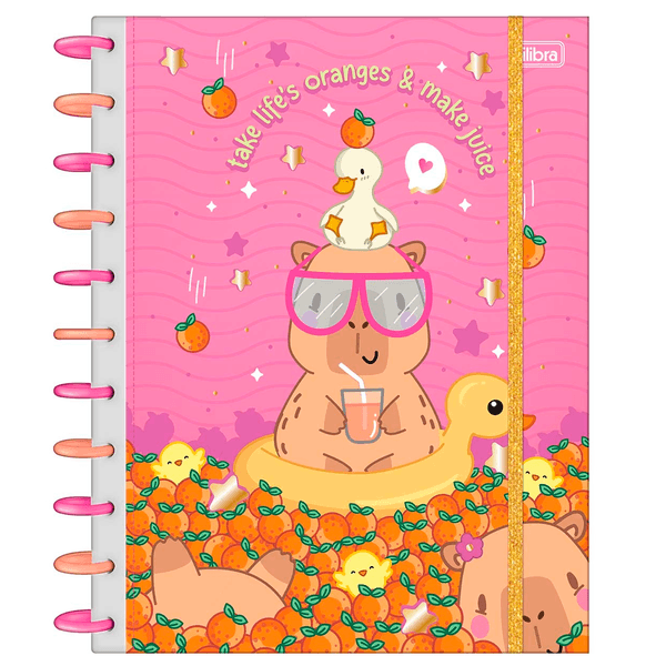 O Caderno Tilidisco Universitário Connect 10 Matérias Capyclub 160 Folhas é o caderno de discos da Tilibra com inspirado no visual de capivaras. O produto é desenvolvido com capa dura removível, 11 discos, bolsa plástica, índice, separador de matérias, adesivos para decorar e 160 folhas de 90 g/m², que podem ser tiradas e adicionadas, quantas vezes quiser, para anotar as aulas, fazer resumos, listar tarefas e organizar as ideias de forma prática e eficiente.